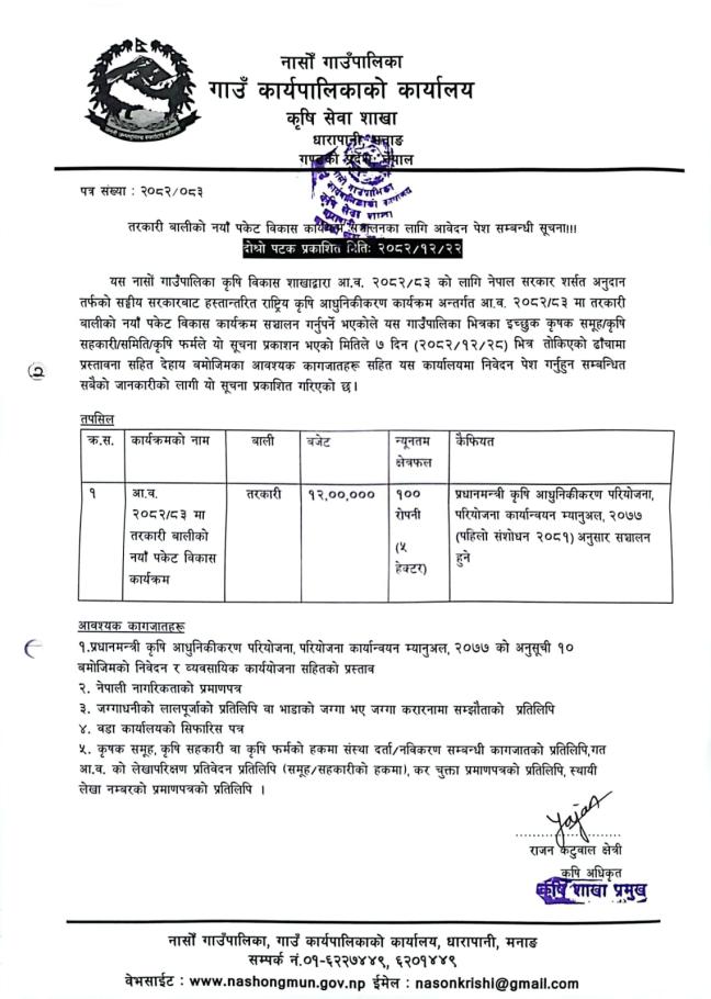 कृषि सम्वनधि दोश्रो पटक सूचना....