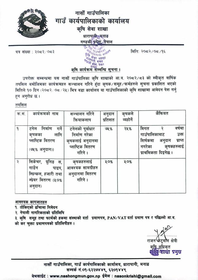 कृषि कार्यक्रम सम्बन्धि सूचना